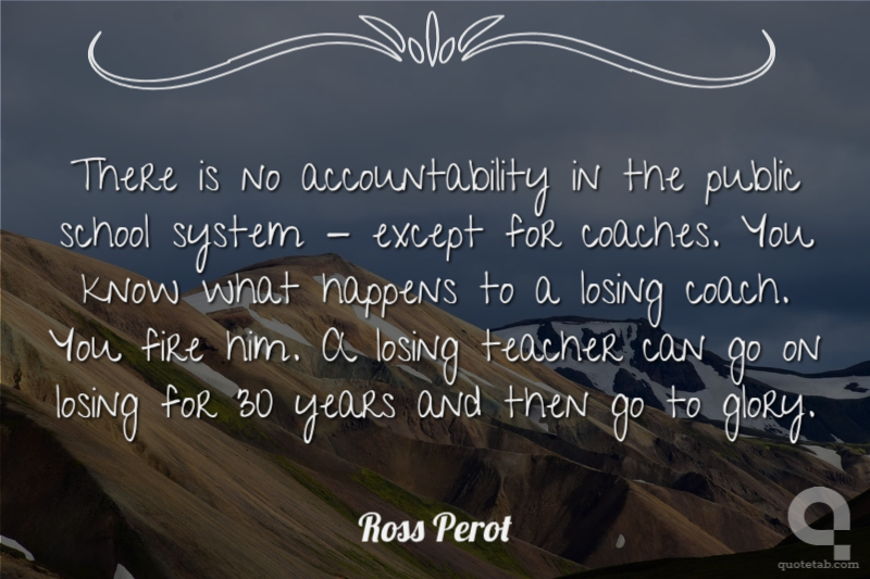 There is no accountability in the public school system - except for coaches. You know what happens to a losing coach. You fire him. A losing teacher can go on losing for 30 years and then go to glory.