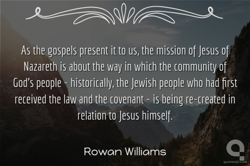 As the gospels present it to us, the mission of Jesus of Nazareth is about the way in which the community of God's people - historically, the Jewish people who had first received the law and the covenant - is being re-created in relation to Jesus himself.