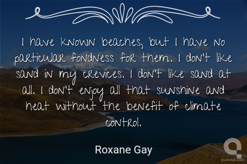 I have known beaches, but I have no particular fondness for them. I don't like sand in my crevices. I don't like sand at all. I don't enjoy all that sunshine and heat without the benefit of climate control.