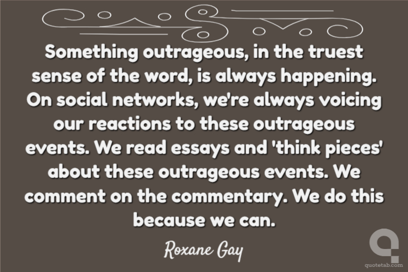 Something outrageous, in the truest sense of the word, is always happening. On social networks, we're always voicing our reactions to these outrageous events. We read essays and 'think pieces' about these outrageous events. We comment on the commentary. We do this because we can.
