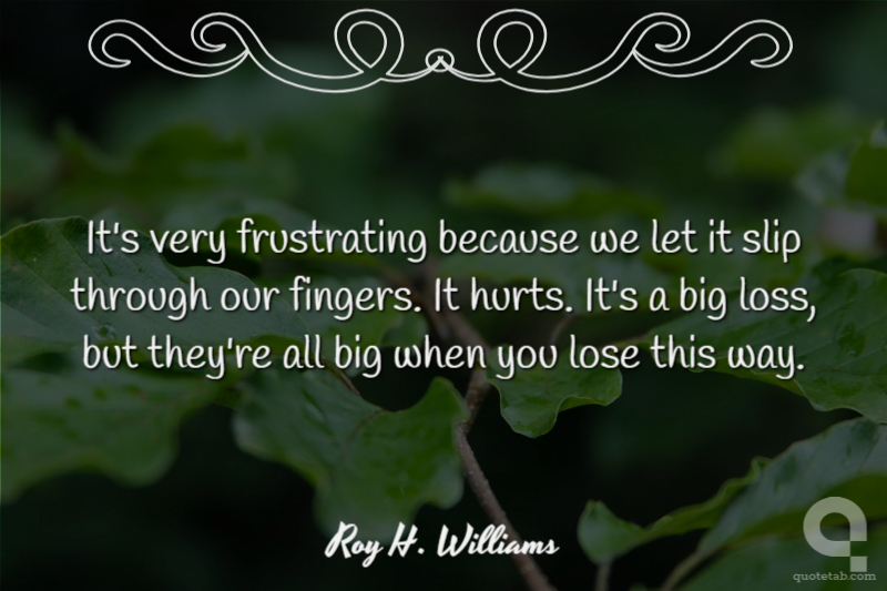 It's very frustrating because we let it slip through our fingers. It hurts. It's a big loss, but they're all big when you lose this way.