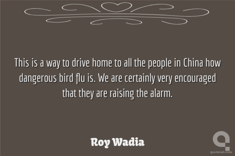 This is a way to drive home to all the people in China how dangerous bird flu is. We are certainly very encouraged that they are raising the alarm.