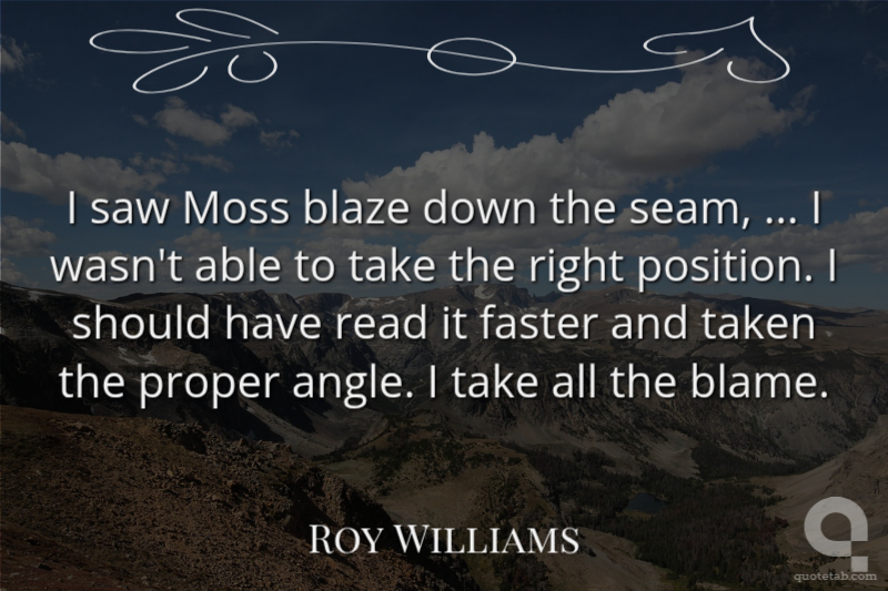 I saw Moss blaze down the seam, ... I wasn't able to take the right position. I should have read it faster and taken the proper angle. I take all the blame.