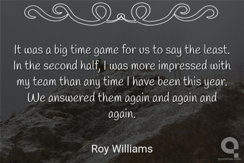 It was a big time game for us to say the least. In the second half, I was more impressed with my team than any time I have been this year. We answered them again and again and again.