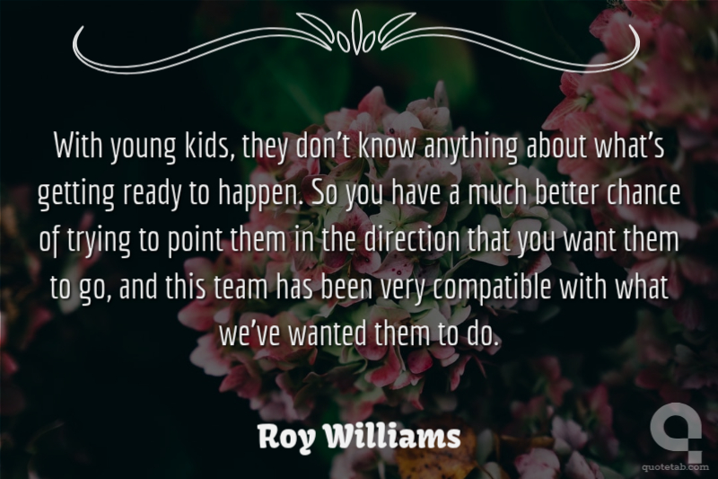 With young kids, they don't know anything about what's getting ready to happen. So you have a much better chance of trying to point them in the direction that you want them to go, and this team has been very compatible with what we've wanted them to do.
