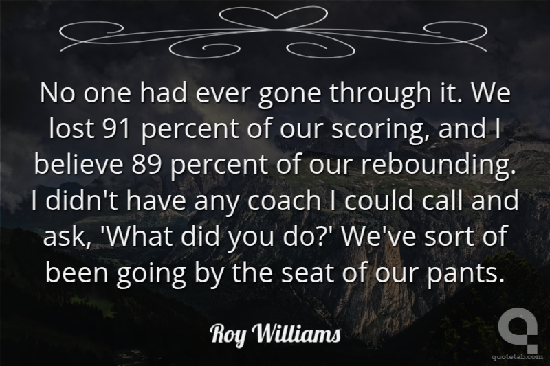 No one had ever gone through it. We lost 91 percent of our scoring, and I believe 89 percent of our rebounding. I didn't have any coach I could call and ask, 'What did you do?' We've sort of been going by the seat of our pants.