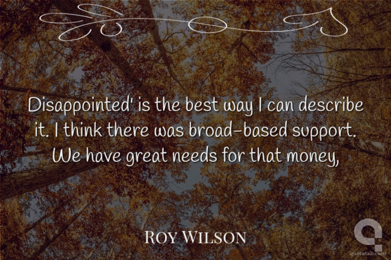 Disappointed' is the best way I can describe it. I think there was broad-based support. We have great needs for that money,