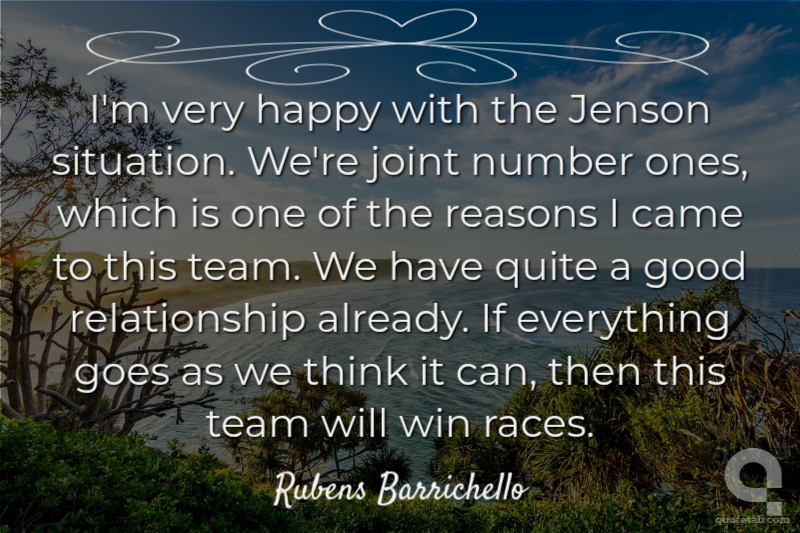 I'm very happy with the Jenson situation. We're joint number ones, which is one of the reasons I came to this team. We have quite a good relationship already. If everything goes as we think it can, then this team will win races.