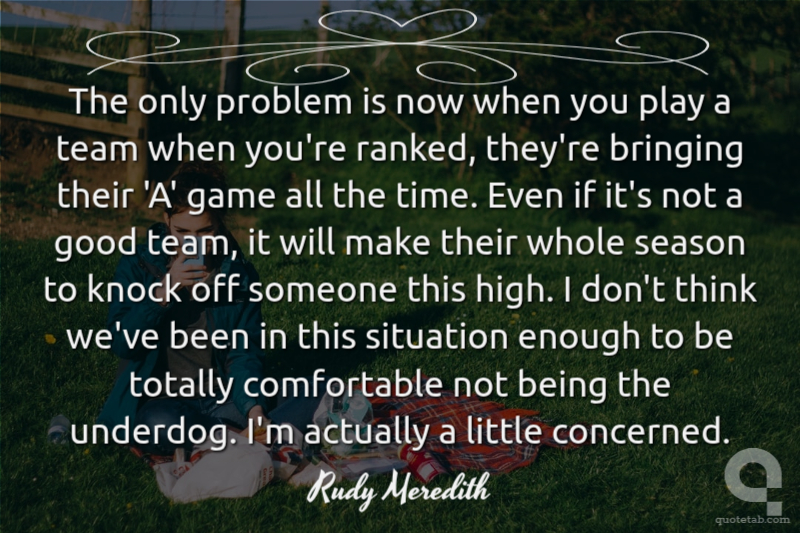 The only problem is now when you play a team when you're ranked, they're bringing their 'A' game all the time. Even if it's not a good team, it will make their whole season to knock off someone this high. I don't think we've been in this situation enough to be totally comfortable not being the underdog. I'm actually a little concerned.