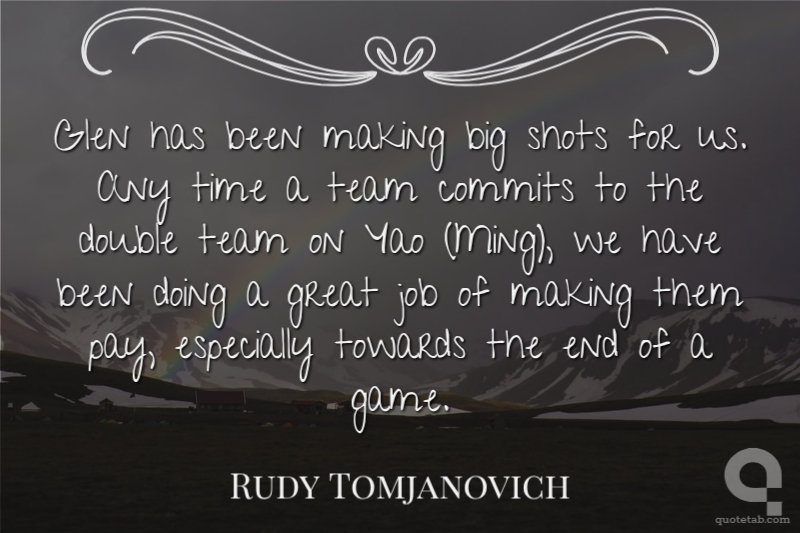 Glen has been making big shots for us. Any time a team commits to the double team on Yao (Ming), we have been doing a great job of making them pay, especially towards the end of a game.