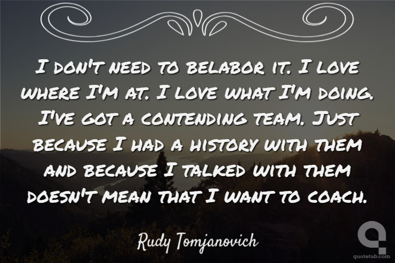 I don't need to belabor it. I love where I'm at. I love what I'm doing. I've got a contending team. Just because I had a history with them and because I talked with them doesn't mean that I want to coach.