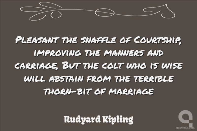 Pleasant the snaffle of Courtship, improving the manners and carriage, But the colt who is wise will abstain from the terrible thorn-bit of marriage