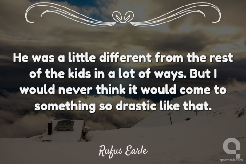 He was a little different from the rest of the kids in a lot of ways. But I would never think it would come to something so drastic like that.