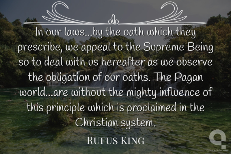 In our laws...by the oath which they prescribe, we appeal to the Supreme Being so to deal with us hereafter as we observe the obligation of our oaths. The Pagan world...are without the mighty influence of this principle which is proclaimed in the Christian system.