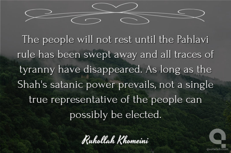 The people will not rest until the Pahlavi rule has been swept away and all traces of tyranny have disappeared. As long as the Shah's satanic power prevails, not a single true representative of the people can possibly be elected.