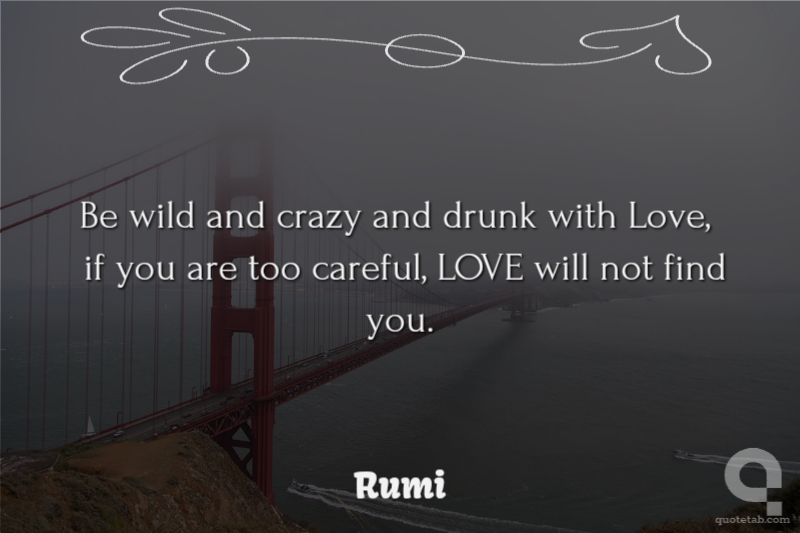 Be wild and crazy and drunk with Love, if you are too careful, LOVE will not find you.