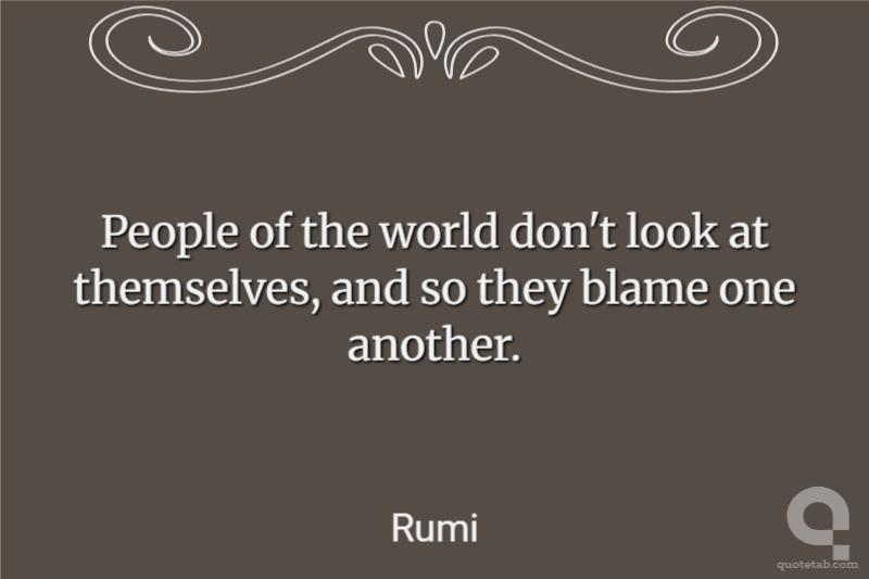 People of the world don't look at themselves, and so they blame one another.