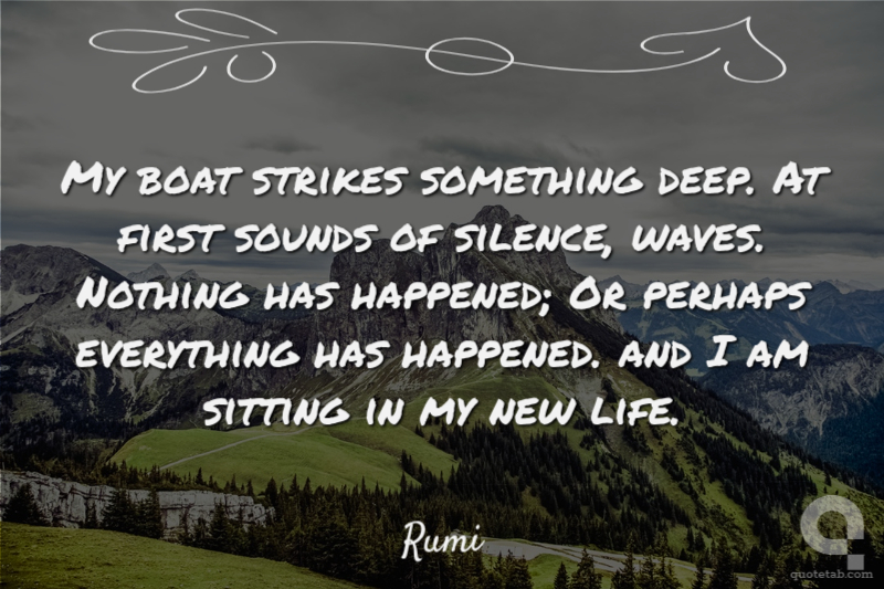 My boat strikes something deep. At first sounds of silence, waves. Nothing has happened; Or perhaps everything has happened. and I am sitting in my new life.