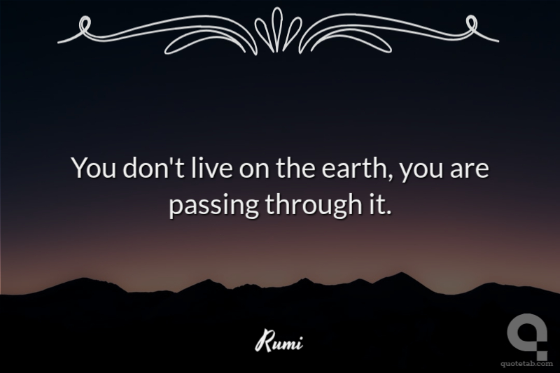 You don't live on the earth, you are passing through it.