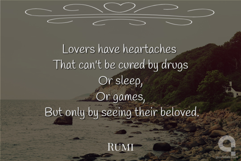 Lovers have heartaches That can't be cured by drugs Or sleep, Or games, But only by seeing their beloved.