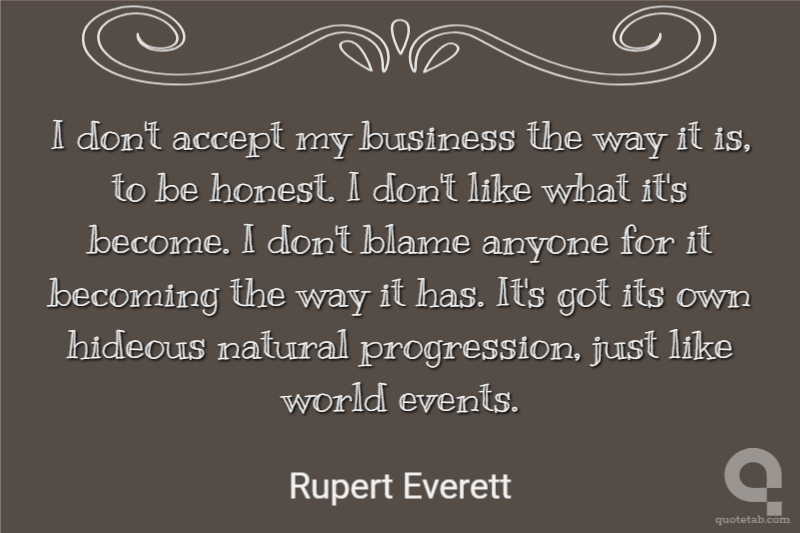 I don't accept my business the way it is, to be honest. I don't like what it's become. I don't blame anyone for it becoming the way it has. It's got its own hideous natural progression, just like world events.