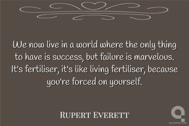 We now live in a world where the only thing to have is success, but failure is marvelous. It's fertiliser, it's like living fertiliser, because you're forced on yourself.