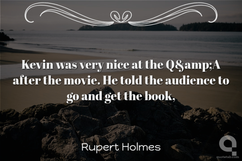 Kevin was very nice at the Q&A after the movie. He told the audience to go and get the book,