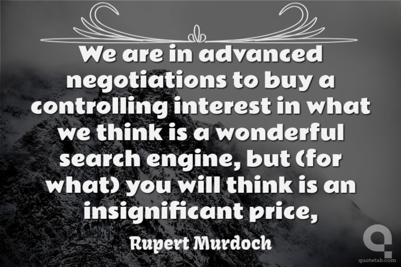 We are in advanced negotiations to buy a controlling interest in what we think is a wonderful search engine, but (for what) you will think is an insignificant price,