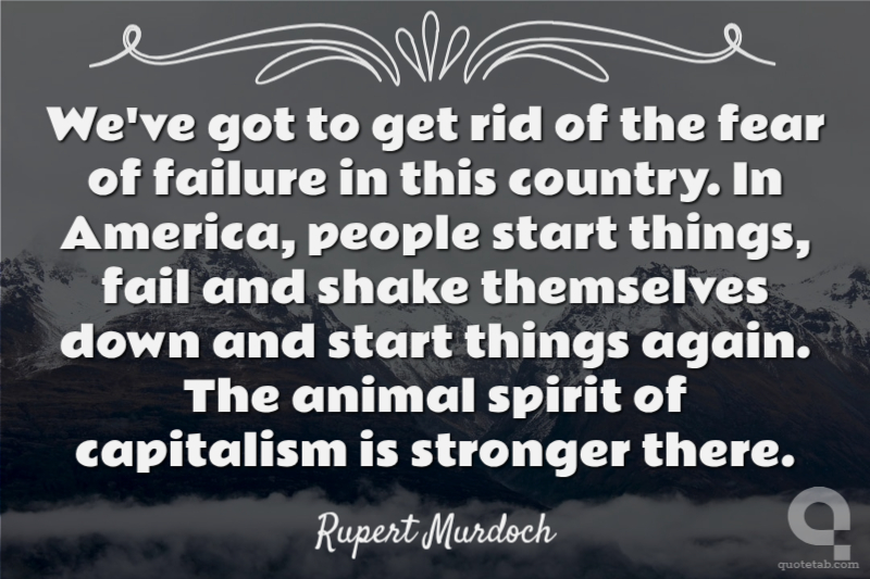We've got to get rid of the fear of failure in this country. In America, people start things, fail and shake themselves down and start things again. The animal spirit of capitalism is stronger there.