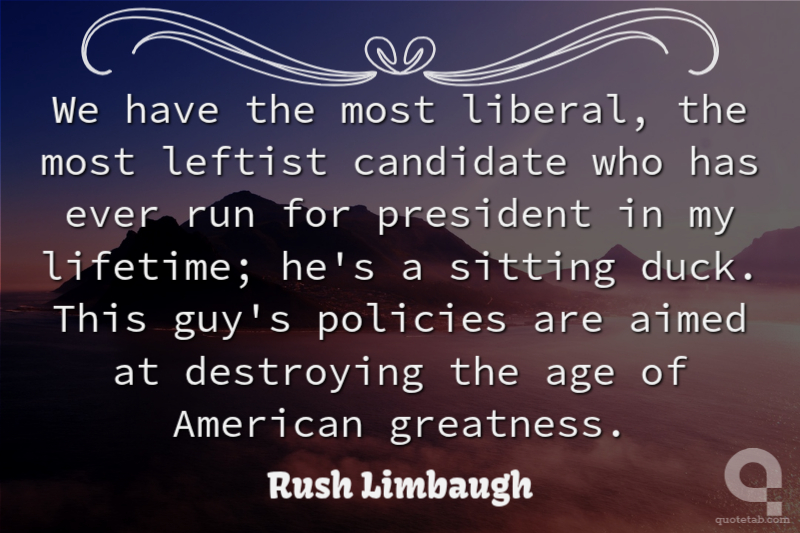 We have the most liberal, the most leftist candidate who has ever run for president in my lifetime; he's a sitting duck. This guy's policies are aimed at destroying the age of American greatness.