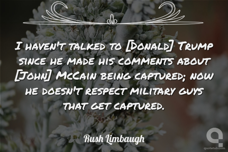 I haven't talked to [Donald] Trump since he made his comments about [John] McCain being captured; now he doesn't respect military guys that get captured.