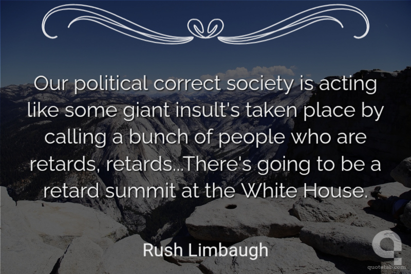 Our political correct society is acting like some giant insult's taken place by calling a bunch of people who are retards, retards...There's going to be a retard summit at the White House.