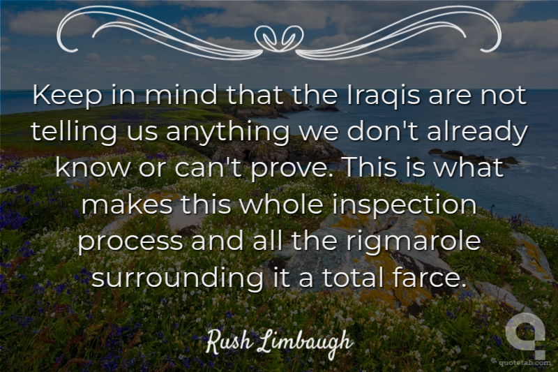 Keep in mind that the Iraqis are not telling us anything we don't already know or can't prove. This is what makes this whole inspection process and all the rigmarole surrounding it a total farce.