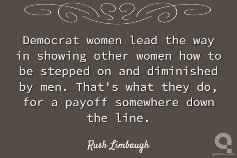 Democrat women lead the way in showing other women how to be stepped on and diminished by men. That's what they do, for a payoff somewhere down the line.