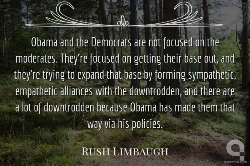 Obama and the Democrats are not focused on the moderates. They're focused on getting their base out, and they're trying to expand that base by forming sympathetic, empathetic alliances with the downtrodden, and there are a lot of downtrodden because Obama has made them that way via his policies.