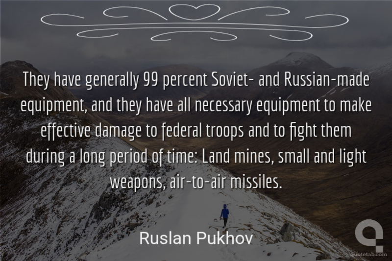 They have generally 99 percent Soviet- and Russian-made equipment, and they have all necessary equipment to make effective damage to federal troops and to fight them during a long period of time: Land mines, small and light weapons, air-to-air missiles.