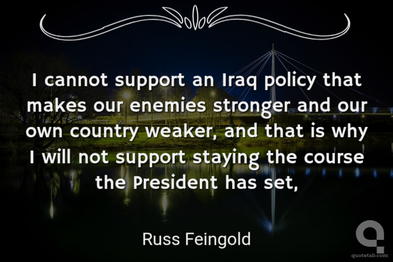 I cannot support an Iraq policy that makes our enemies stronger and our own country weaker, and that is why I will not support staying the course the President has set,