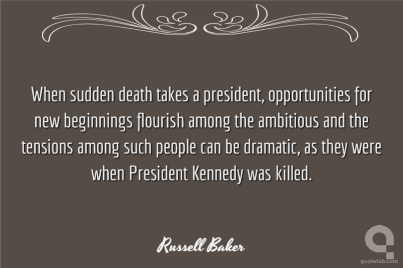 When sudden death takes a president, opportunities for new beginnings flourish among the ambitious and the tensions among such people can be dramatic, as they were when President Kennedy was killed.