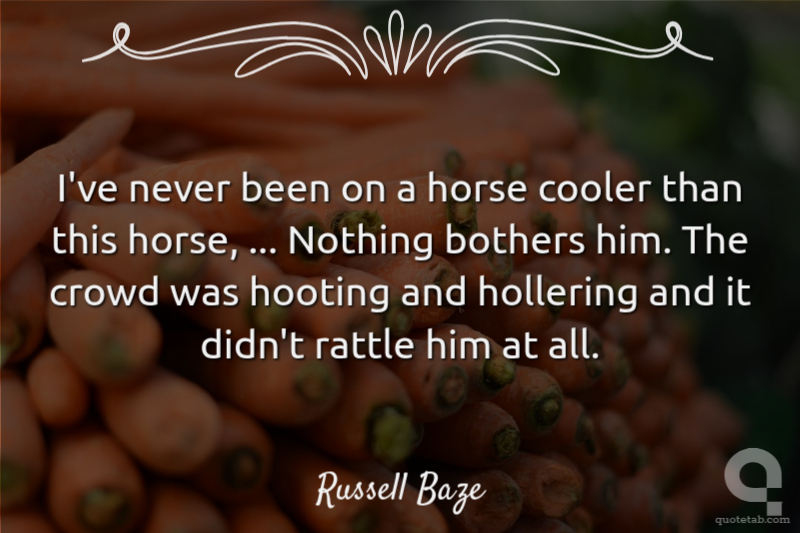 I've never been on a horse cooler than this horse, ... Nothing bothers him. The crowd was hooting and hollering and it didn't rattle him at all.