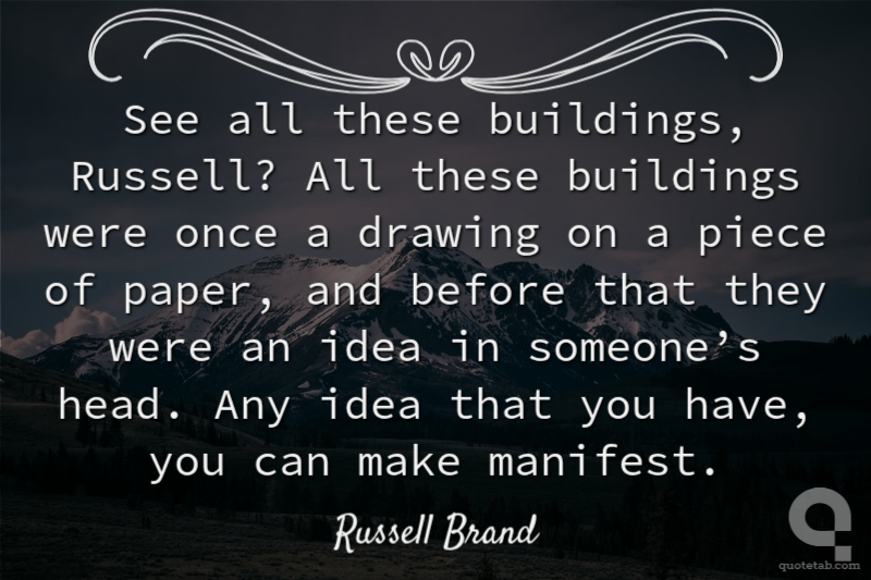 See all these buildings, Russell? All these buildings were once a drawing on a piece of paper, and before that they were an idea in someone’s head. Any idea that you have, you can make manifest.