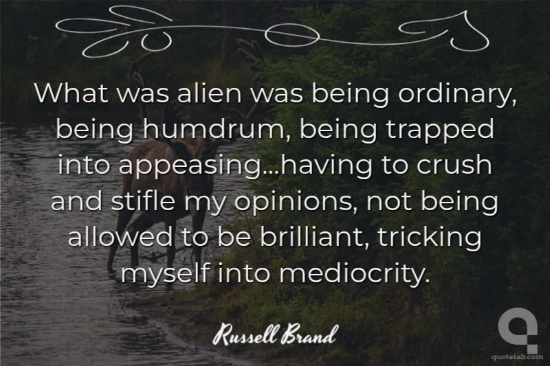 What was alien was being ordinary, being humdrum, being trapped into appeasing...having to crush and stifle my opinions, not being allowed to be brilliant, tricking myself into mediocrity.