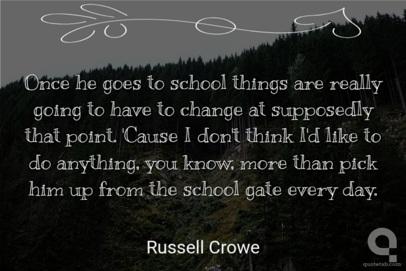 Once he goes to school things are really going to have to change at supposedly that point. 'Cause I don't think I'd like to do anything, you know, more than pick him up from the school gate every day.