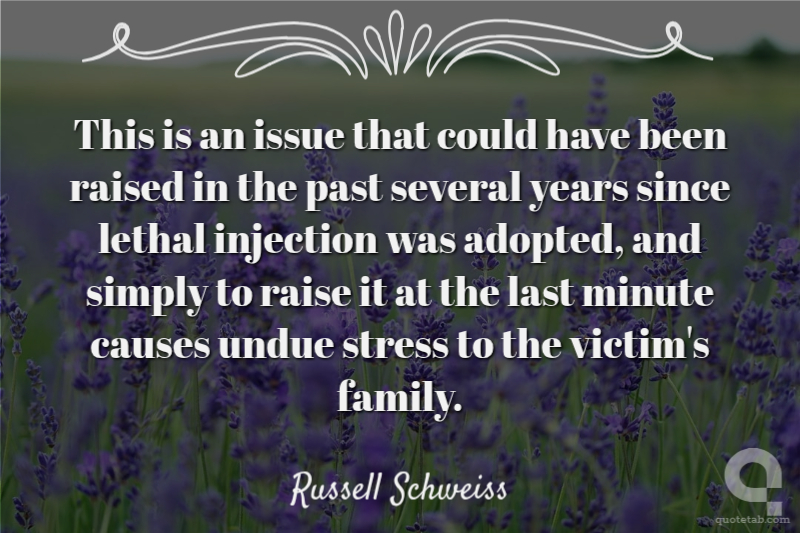 This is an issue that could have been raised in the past several years since lethal injection was adopted, and simply to raise it at the last minute causes undue stress to the victim's family.