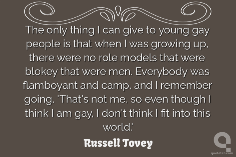 The only thing I can give to young gay people is that when I was growing up, there were no role models that were blokey that were men. Everybody was flamboyant and camp, and I remember going, 'That's not me, so even though I think I am gay, I don't think I fit into this world.'