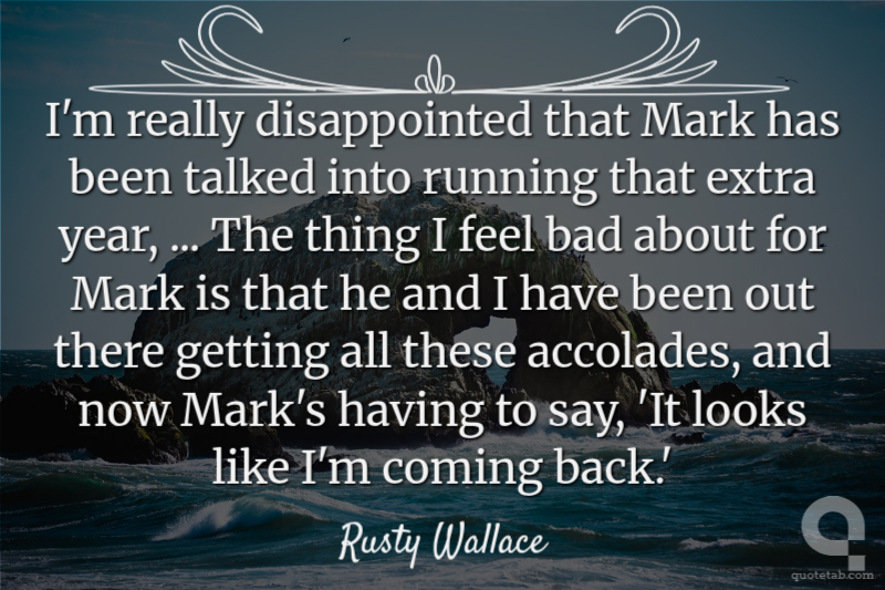 I'm really disappointed that Mark has been talked into running that extra year, ... The thing I feel bad about for Mark is that he and I have been out there getting all these accolades, and now Mark's having to say, 'It looks like I'm coming back.'