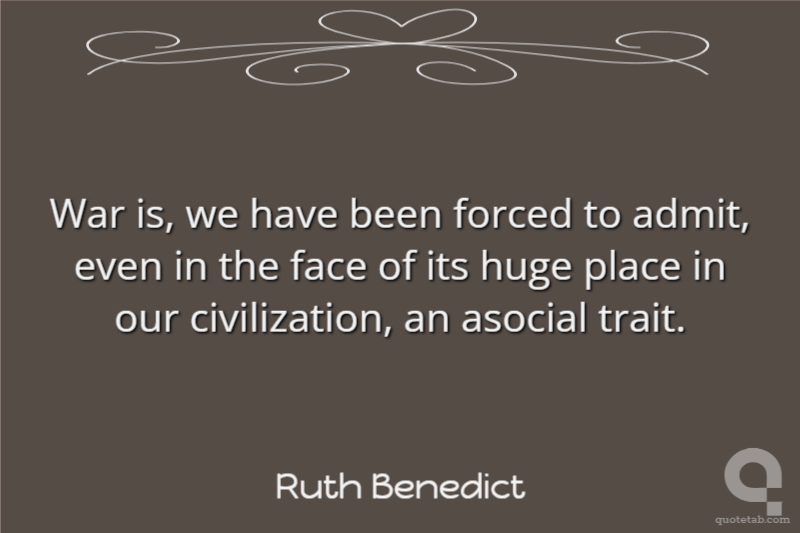 War is, we have been forced to admit, even in the face of its huge place in our civilization, an asocial trait.