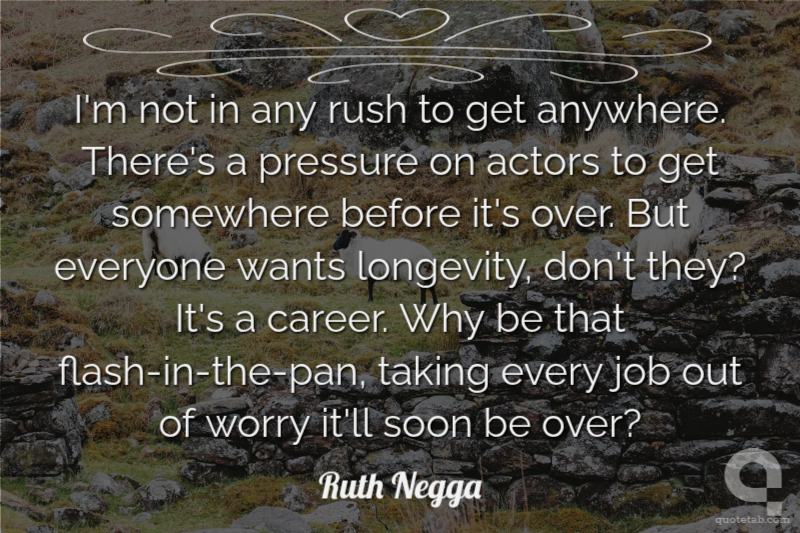 I'm not in any rush to get anywhere. There's a pressure on actors to get somewhere before it's over. But everyone wants longevity, don't they? It's a career. Why be that flash-in-the-pan, taking every job out of worry it'll soon be over?
