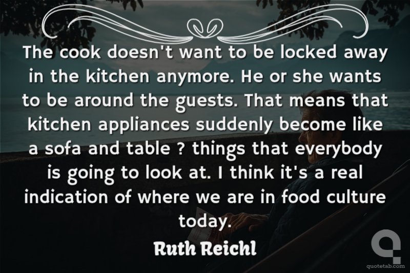 The cook doesn't want to be locked away in the kitchen anymore. He or she wants to be around the guests. That means that kitchen appliances suddenly become like a sofa and table ? things that everybody is going to look at. I think it's a real indication of where we are in food culture today.