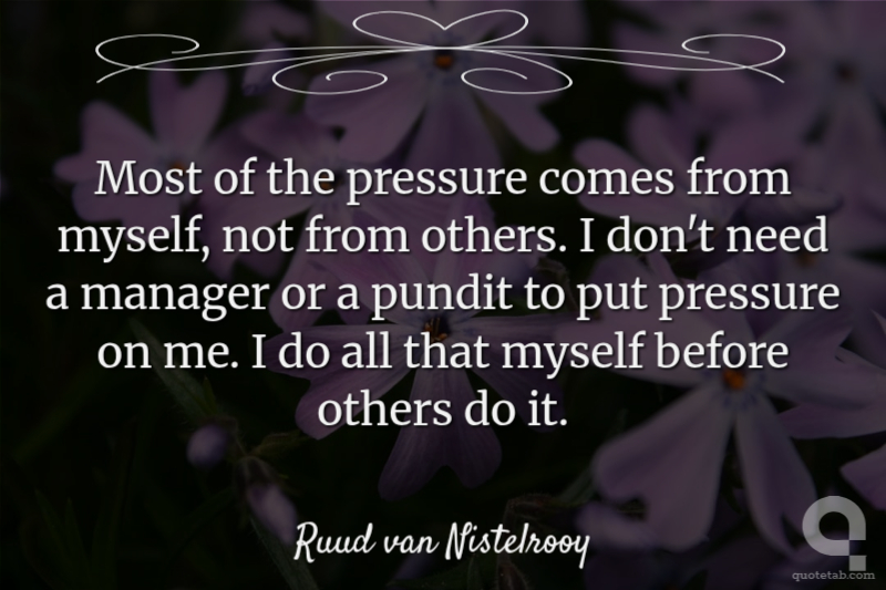 Most of the pressure comes from myself, not from others. I don't need a manager or a pundit to put pressure on me. I do all that myself before others do it.
