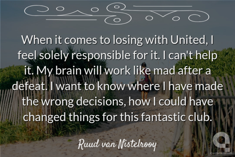 When it comes to losing with United, I feel solely responsible for it. I can't help it. My brain will work like mad after a defeat. I want to know where I have made the wrong decisions, how I could have changed things for this fantastic club.